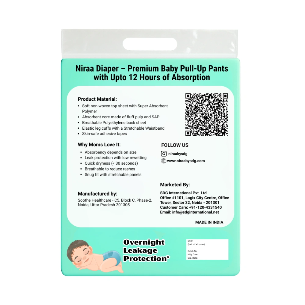 Niraa Premium Disposable Baby Diaper Pull-Up Pants with Up to 12 Hours of Absorption | Size – S